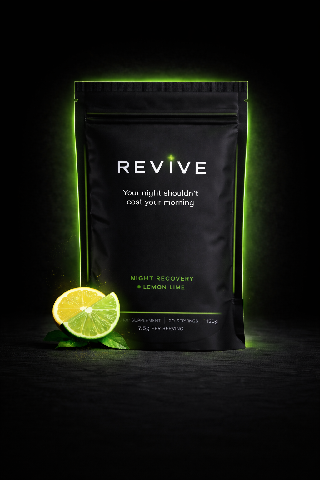 Revive is a premium nighttime recovery supplement built for people who go out and still need to perform the next day. Our formula supports hydration, nervous system recovery, and morning clarity so you wake up sharp, ready to train, and ready to show up.